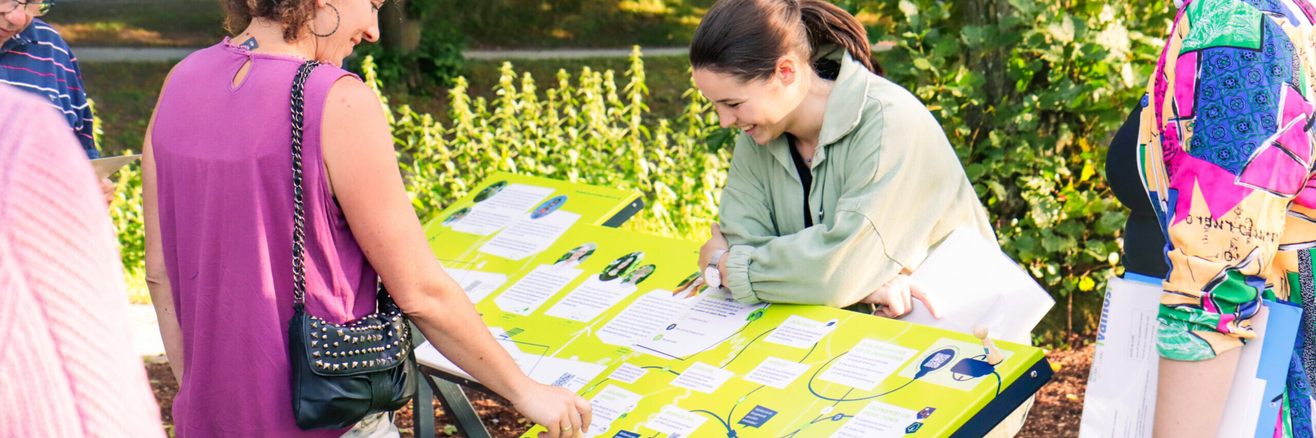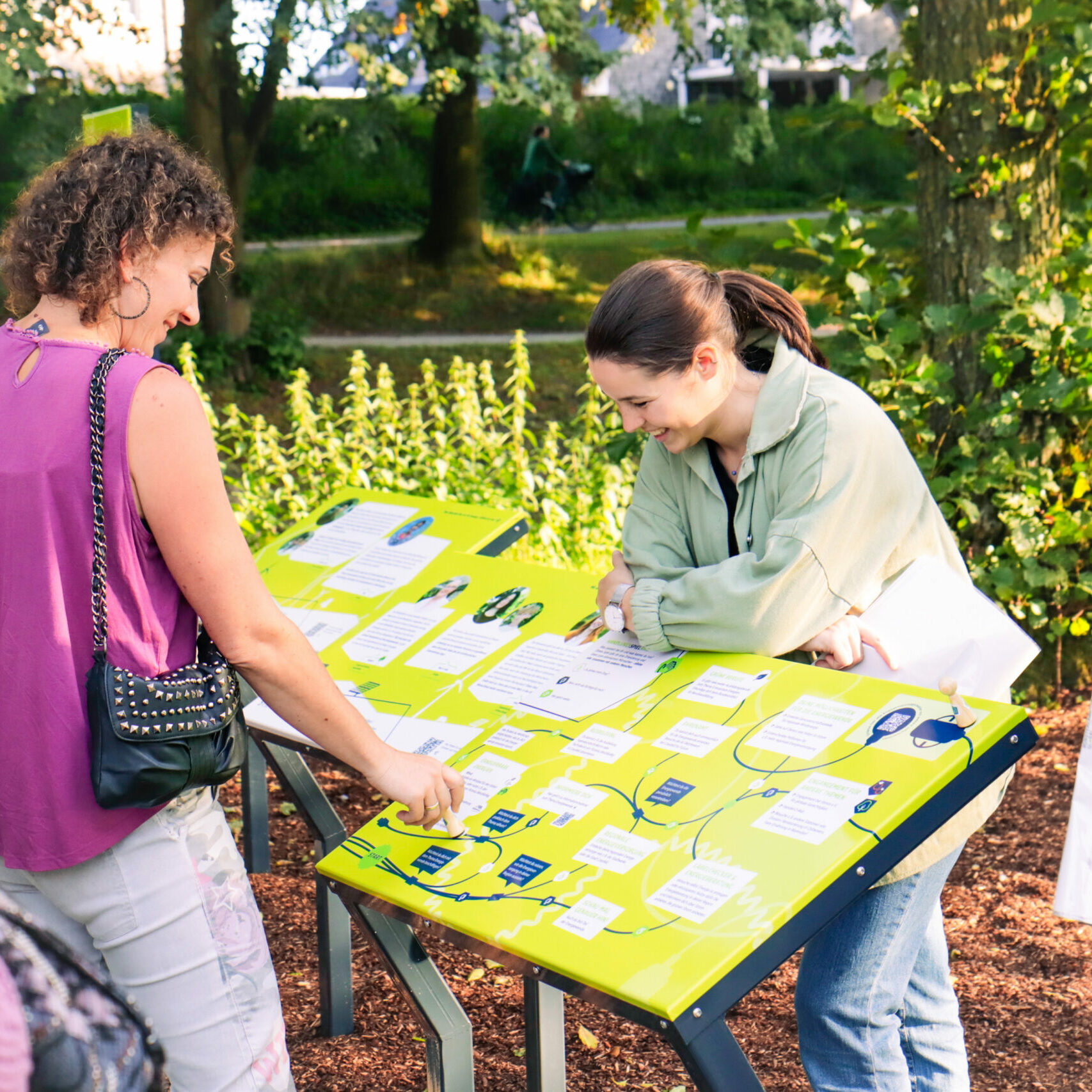 Nutze die digitale Mapstory für eine interaktive Führung zu allen Stelen und Pulten. Mache ein Quiz, höre unterschiedliche Interviews mit engagierten Menschen und hole dir weitere Zusatzinformationen.