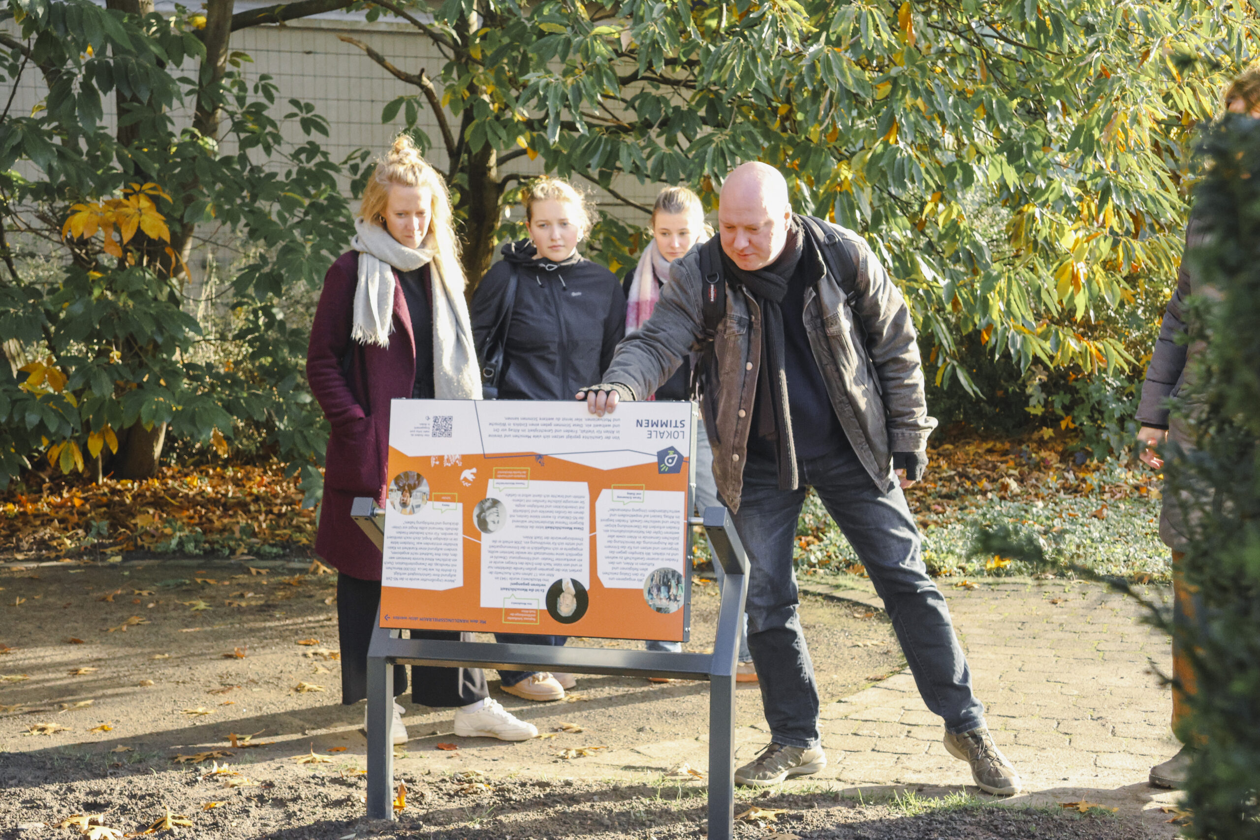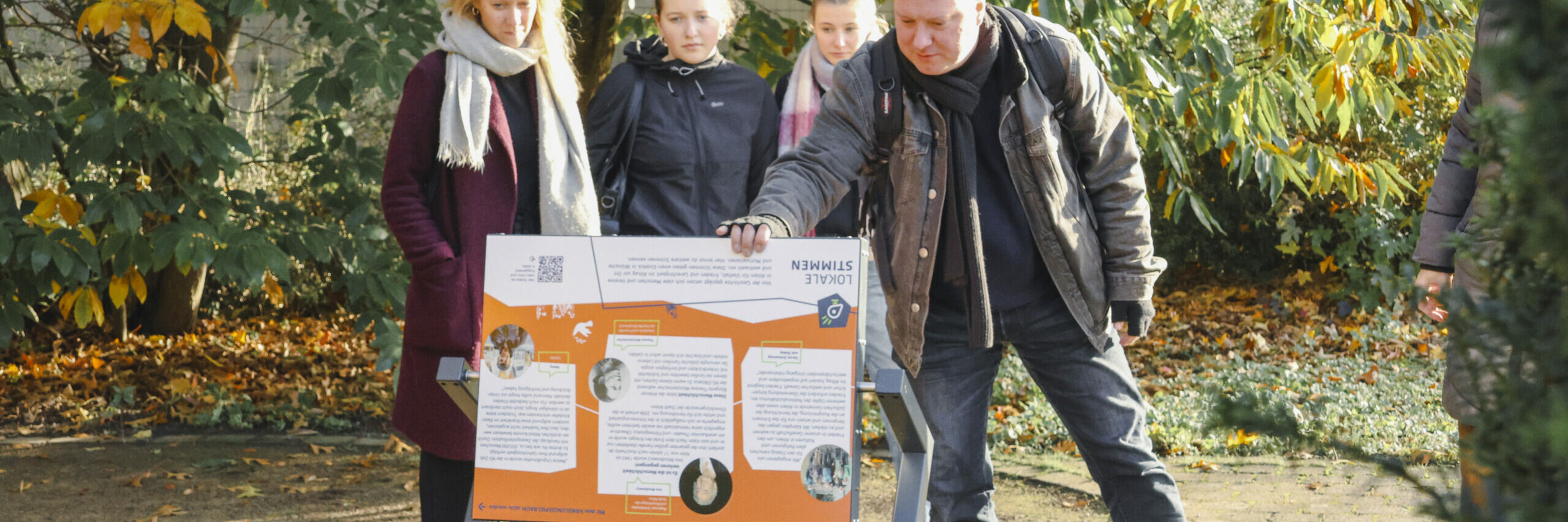 Nutze die digitale Mapstory für eine interaktive Führung zu allen Stelen und Pulten. Mache ein Quiz, höre unterschiedliche Interviews mit engagierten Menschen und hole dir weitere Zusatzinformationen.